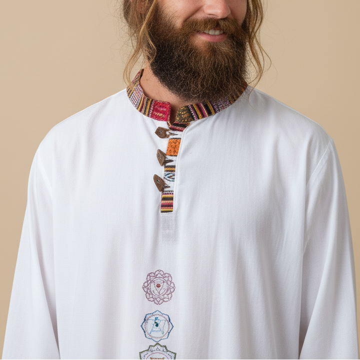 7 Chakra Kurta - White (Mulicolour Chakra)