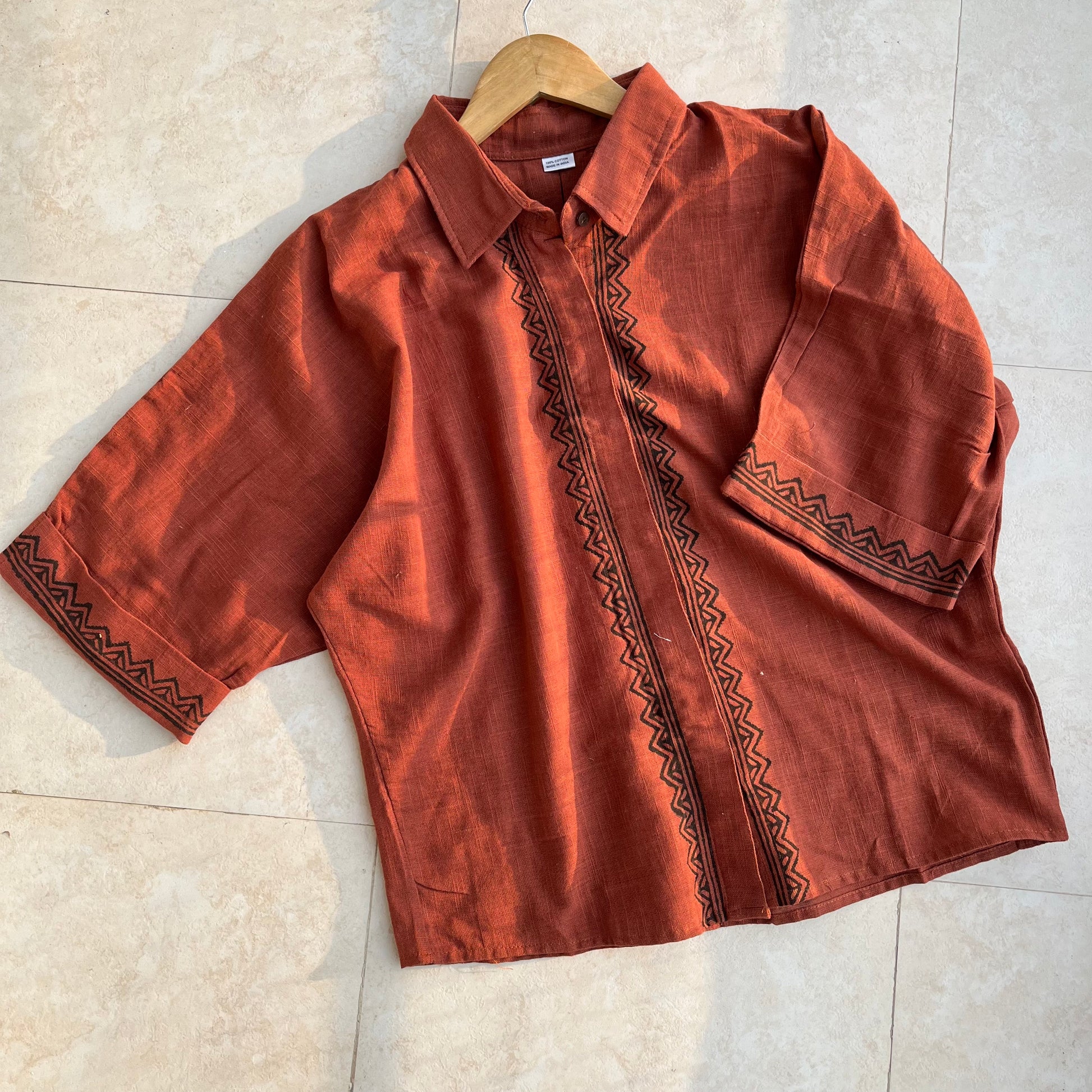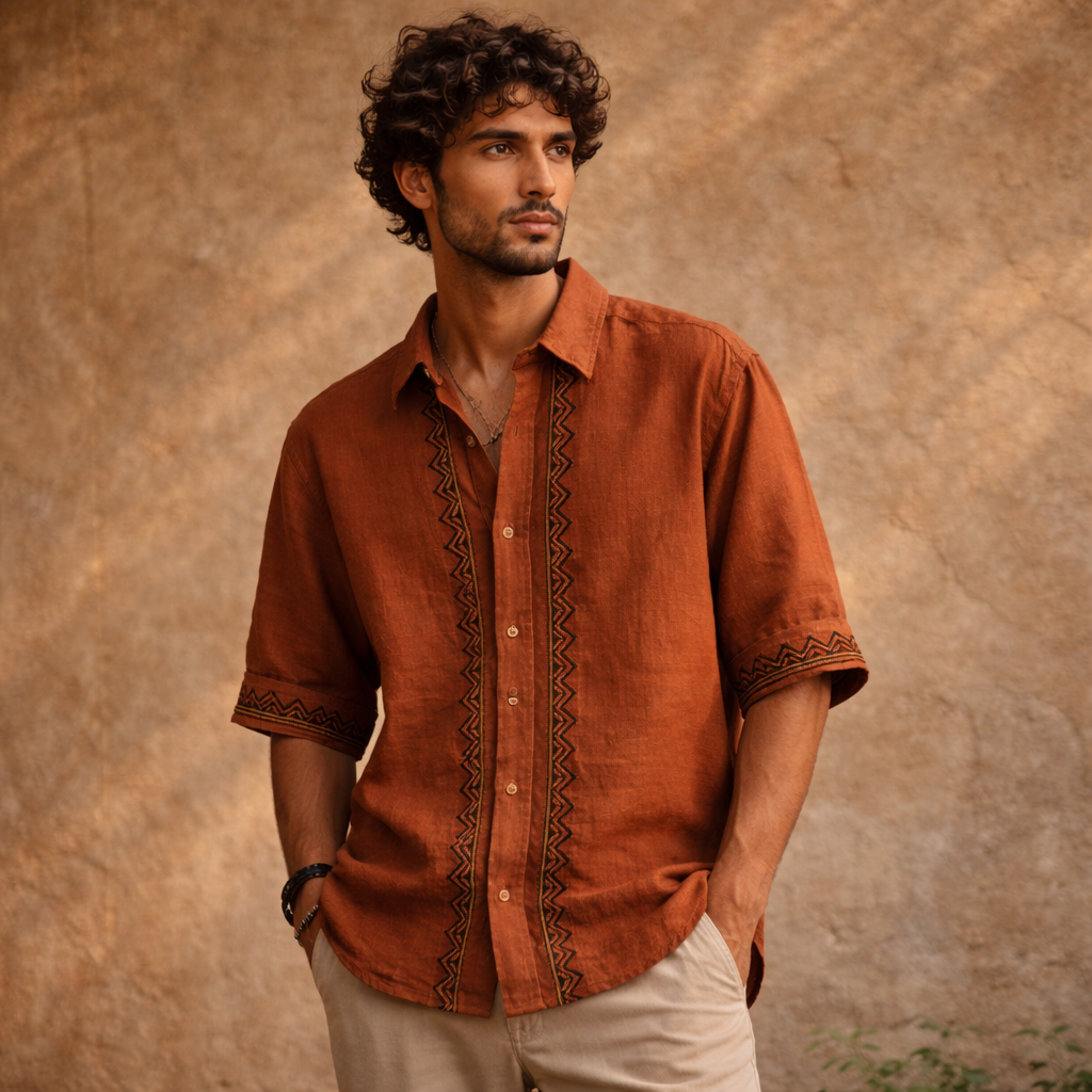 Rahgir Cotton Shirt - Rust Orange